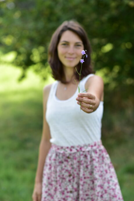♥ Miluji svou zahradu, kde můžu opečovávat rostliny a půdu, a pak využívat její hojnosti. Ráda chodím do přírody a sbírám divoké byliny a bobule na čaj a zavařeniny.